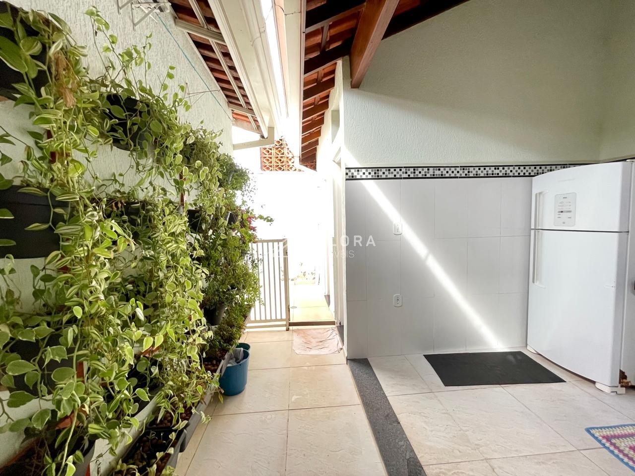 Quintal grande com area gourmet completa, banheiro completo, espaco coberto de lavanderia, canal, corredor largo com area de luz, quarto com despejo com armario planejado.