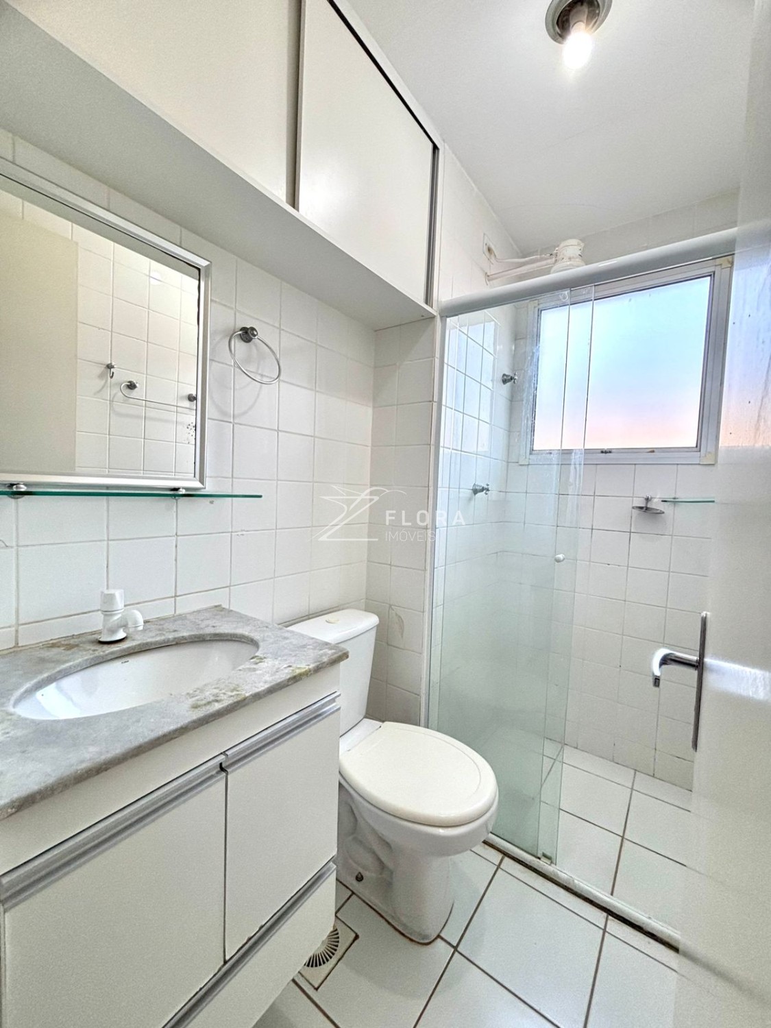 ✔ Banheiro social com armários planejados, espelho e box blindex