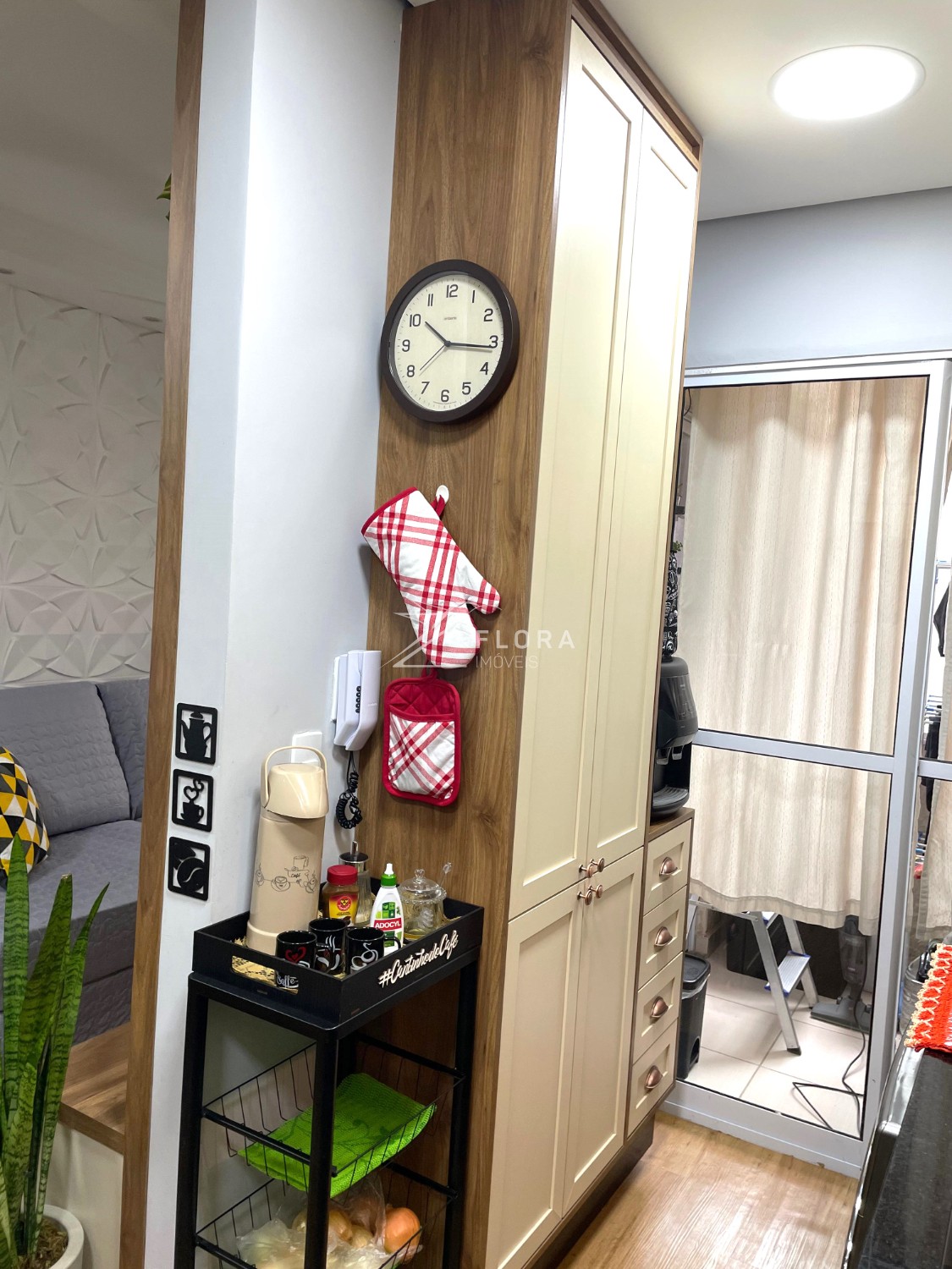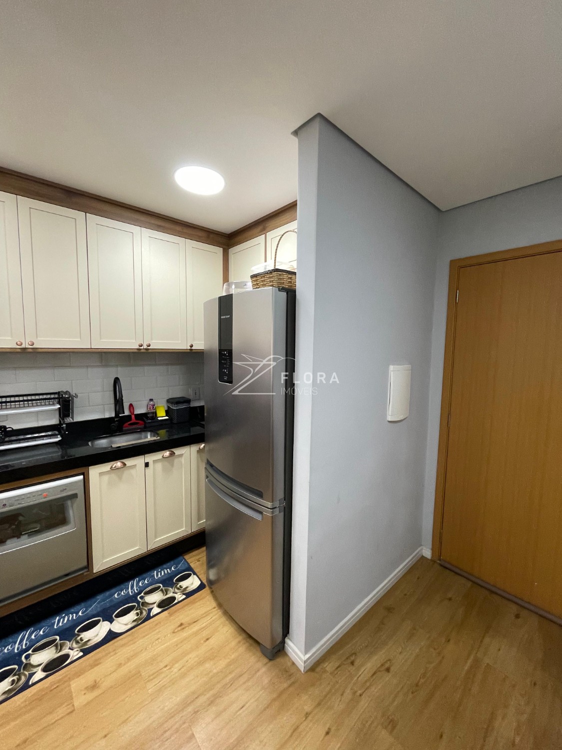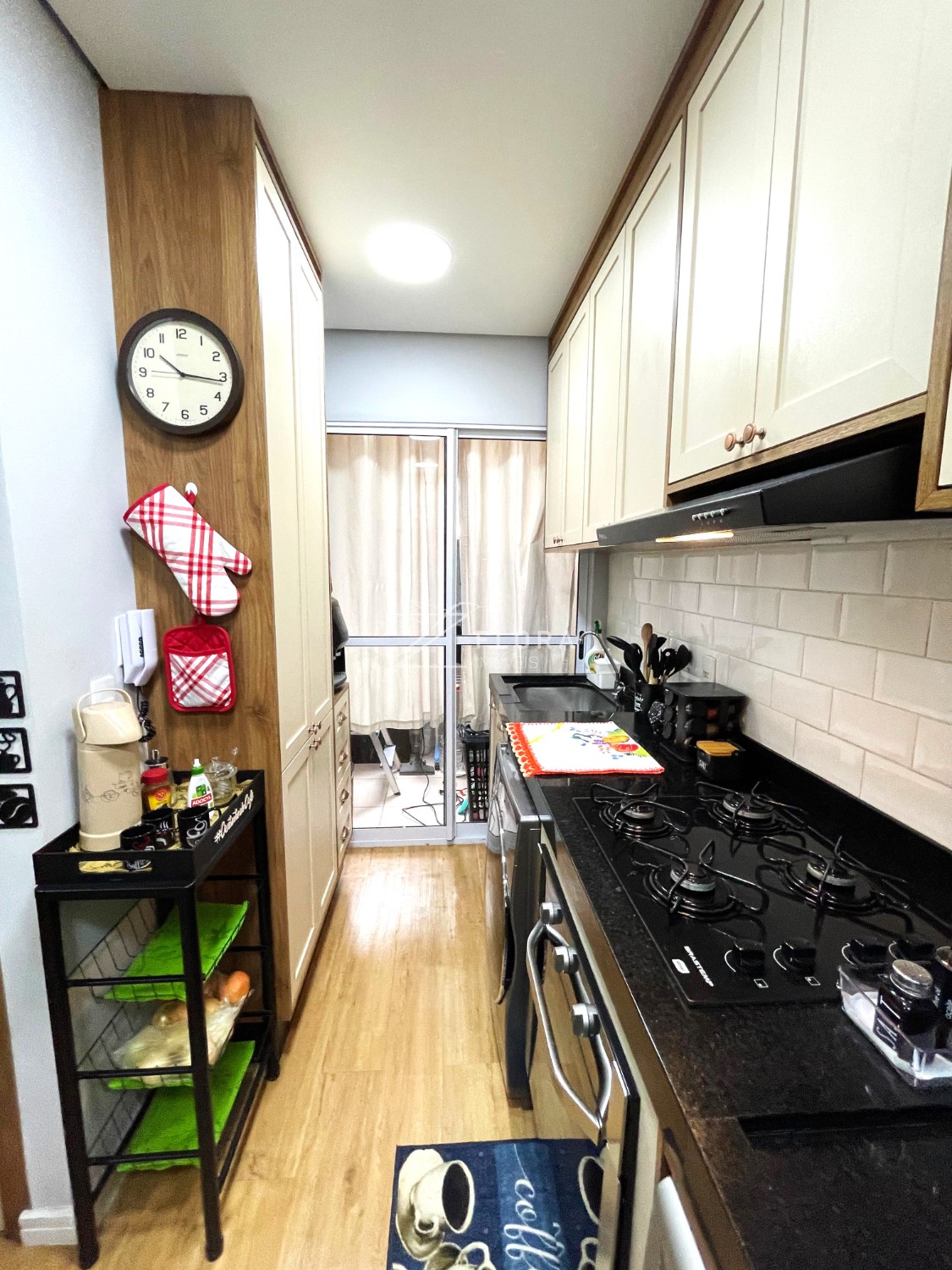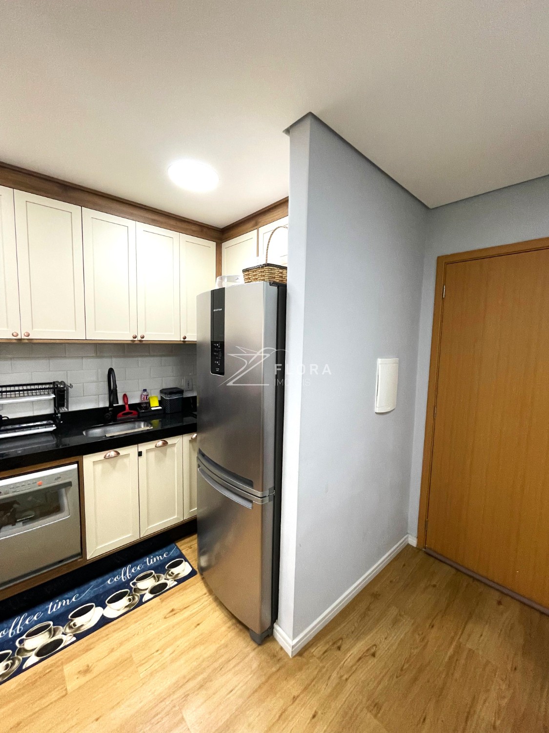 Cozinha planejada: Armários com acabamento refinado, fogão cooktop, exaustor e forno embutido. Espaço adaptado para lava-louças. A área de serviço integrada é charmosa e já preparada para máquina lava e seca.