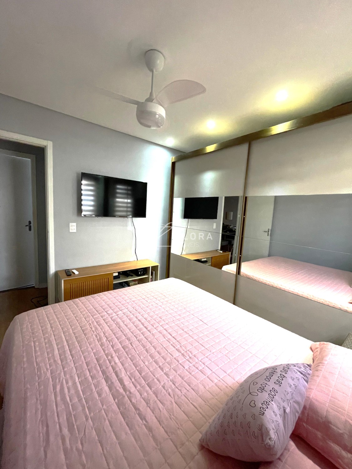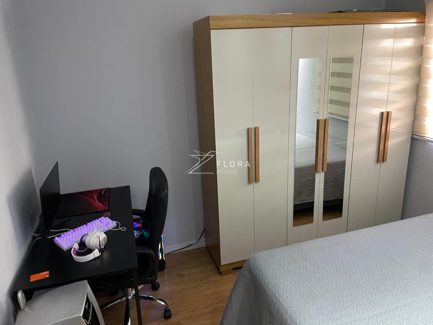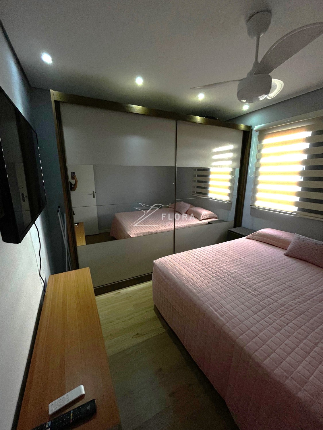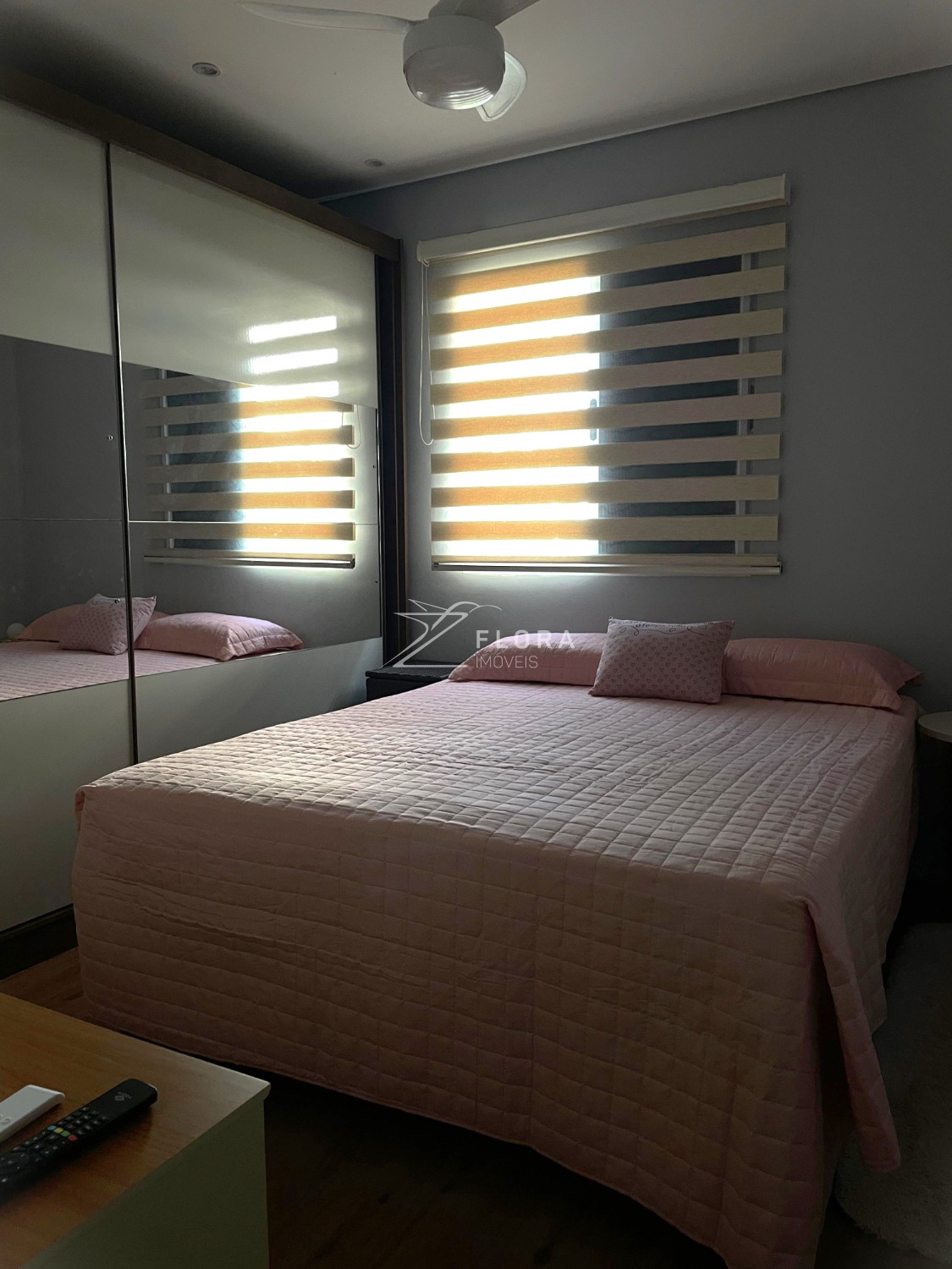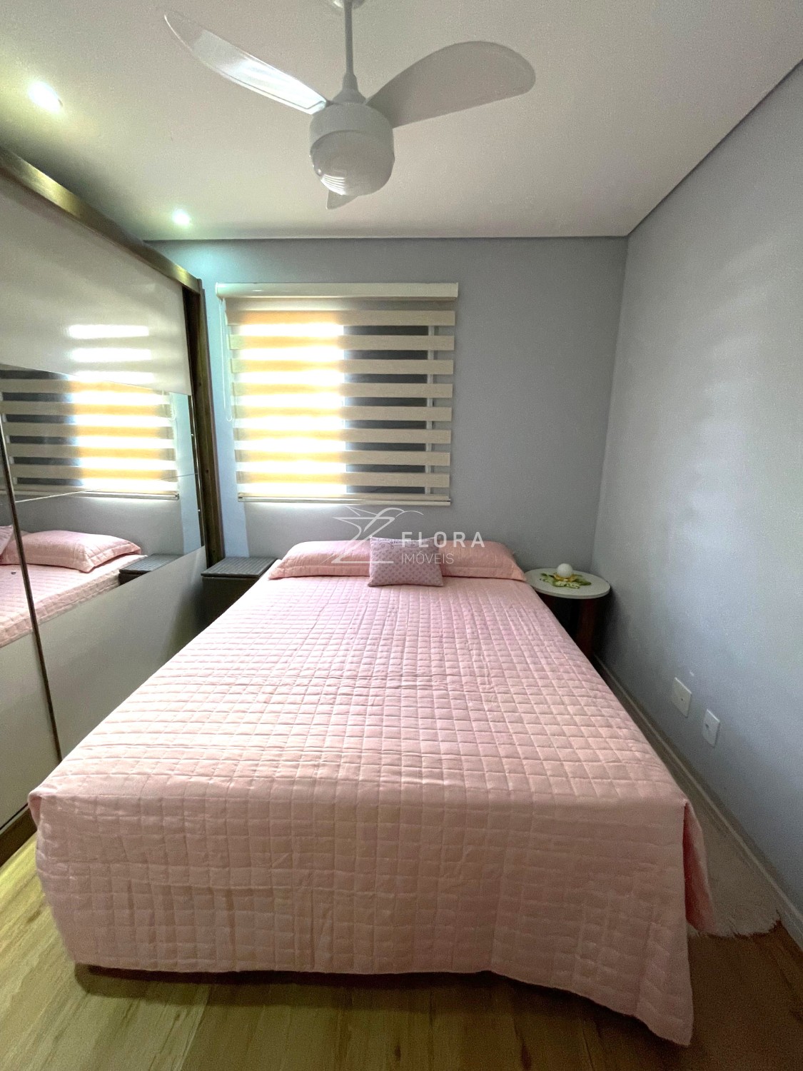Dois dormitórios: Ambos com piso laminado e persianas blackout. Um dos quartos conta com ventilador de teto.