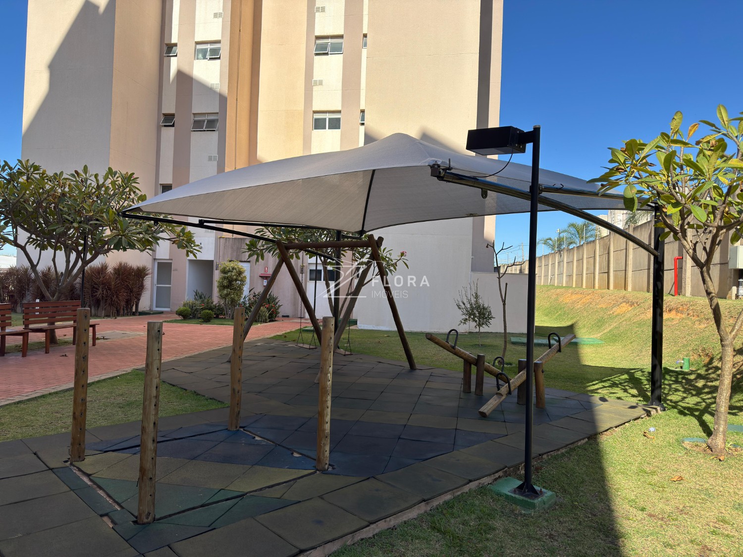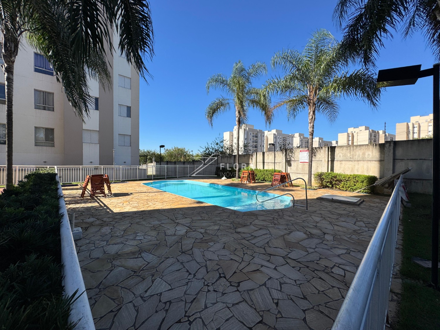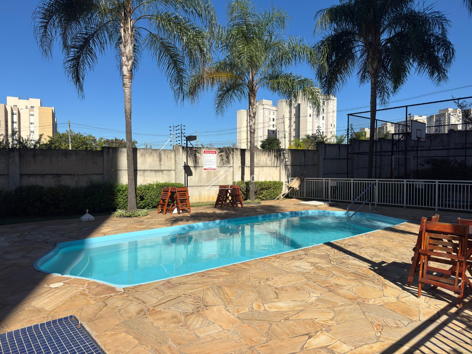 O condomínio conta com infraestrutura completa de lazer e segurança: piscina, quadra poliesportiva, salão de festas, brinquedoteca, academia e portaria 24h.