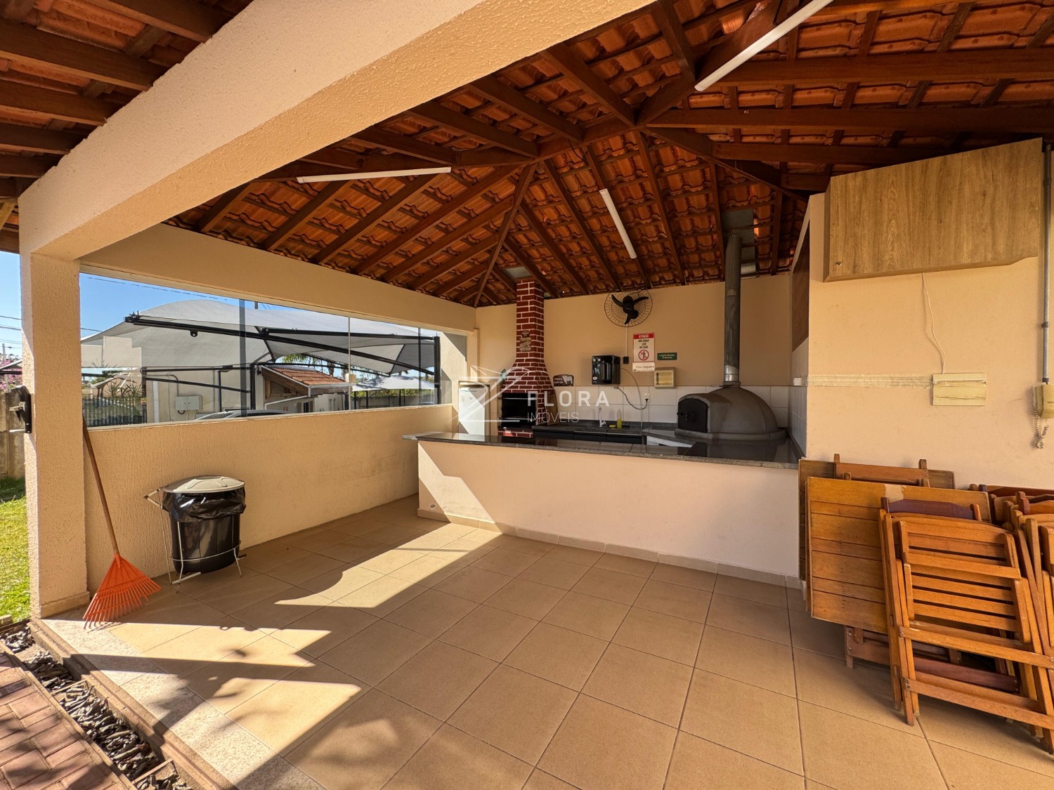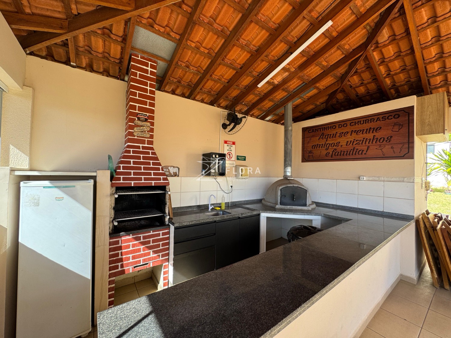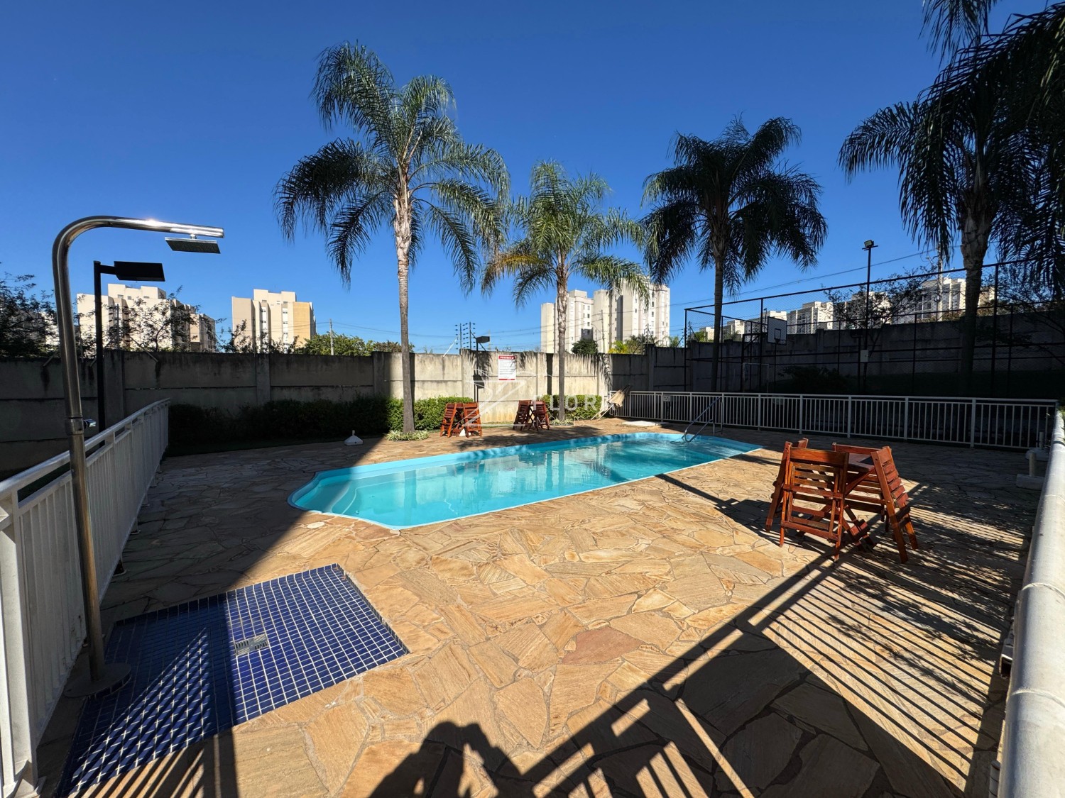 O condomínio conta com infraestrutura completa de lazer e segurança: piscina, quadra poliesportiva, salão de festas, brinquedoteca, academia e portaria 24h.